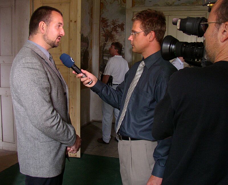 Pan kastelán poskytuje rozhovor České televizi. |