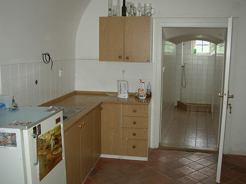 Kuchyně a koupelna pana kastelána. |