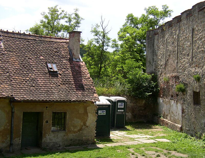 Proluka mezi příhrádkem a prostřední částí hradu, možná ještě letos zde budou postaveny toalety. |